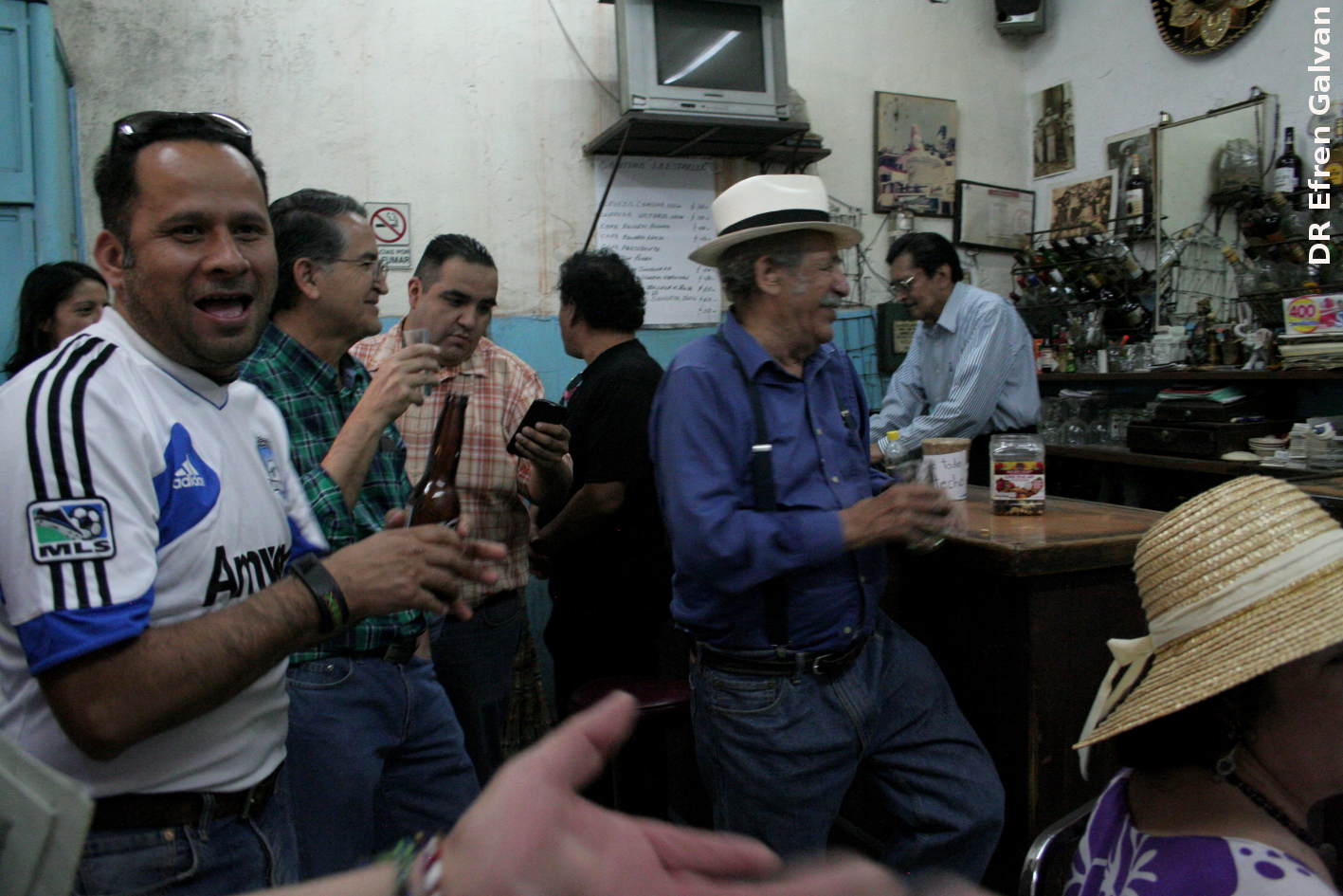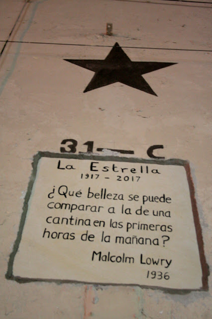 Puntuales a la cita fueron llegando los invitados a la celebración del centenario de La Estrella. "¡Un siglo!", decían, "vaya, qué pronto se hace tarde", y entraron a la cantina por las puertas que seguían meciéndose como las puertas del cielo y chocaron las manos y las copas y los vasos y las botellas y fueron metiéndose poco a poco en el mar de la ebriedad buscando siempre el punto de equilibrio que está más allá, en el fondo de la barranca o encima del volcán, pero siempre lejos, siempre inalcanzable y comenzaron a oír el eco que venía retumbando desde lejos: "Quauhnáhuac era, en este aspecto, como el tiempo: por doquier que se mirase estaba aguardando el abismo a la vuelta de la esquina. ¡Dormitorio para zopilotes y ciudad de Moloch!..." y sintieron un temblor que no quedaba claro si era de este mundo, de la carne, o de aquella parte del cuerpo que antes se llamaba espíritu y se movían entre las sillas y las mesas de La Estrella tratando de encontrar un acomodo a modo, una forma de ser que dejara ver a los otros que somos nosotros para armar el puente necesario y en ese instante recordaron que "en este mismo puente el Cónsul le sugirió alguna vez que hiciese una película sobre la Atlántida. Sí, asomado de la misma manera, ebrio (aunque dueño de sí) coherente, un tanto loco, un tanto impaciente —fue una de esas ocasiones en que el Cónsul había bebido hasta la sobriedad— le había hablado sobre el espíritu del abismo, sobre el dios de la tempestad, el ‘huracán’..." (Bajo el volcán, Capítulo I), todo y más y también eso de que todos hablaban y nada tenía significado porque nadie oía nada y todos hablaban solos, hablando para sí mismos, como en una inmensa Torre de Babel, pero a la vez todos entendían y se oía, como una gritería, aquello de Rimbaud: "¡Somos tantos los condenados en la tierra!" (Una temporada en el infierno) y siguieron buscando el equilibrio anhelado...