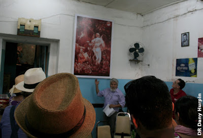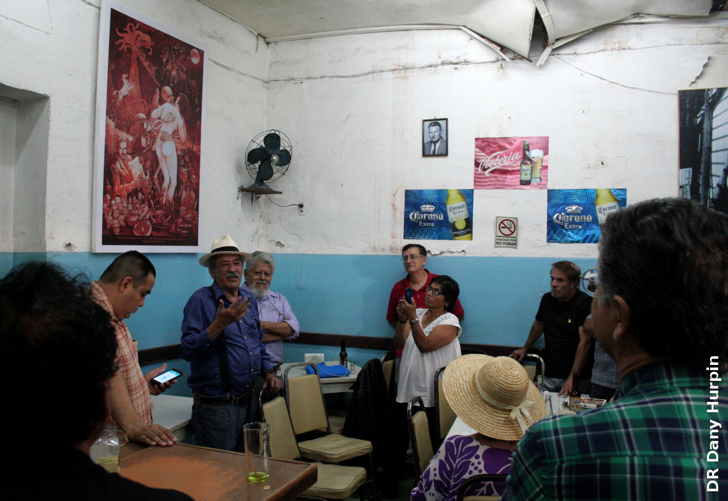 Dany Hurpin leyó el párrafo del Capítulo II de Bajo el volcán de donde está tomada la frase de la placa conmemorativa y contextualizó la cantina como arena donde luchan la luz y las tinieblas.