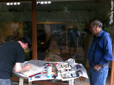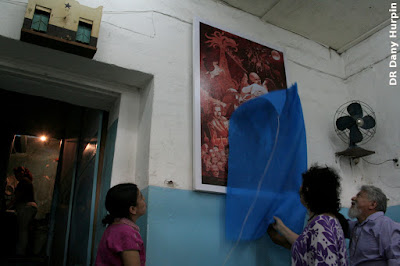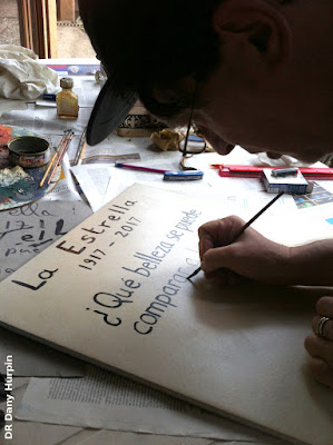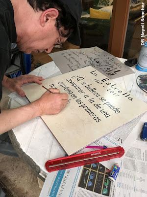 Nayeli Sánchez, Óscar Menéndez, Dany Hurpin y Frédéric-Yves Jeannet elaborando la placa para la conmemoración del centenario de La Estrella y el homenaje a Malcolm Lowry.