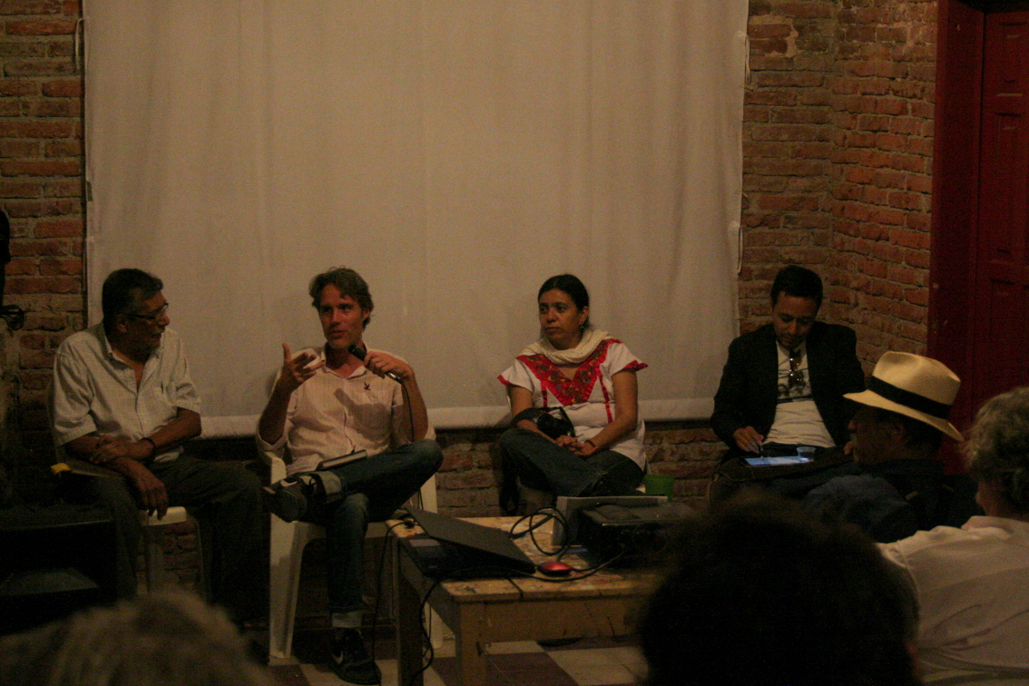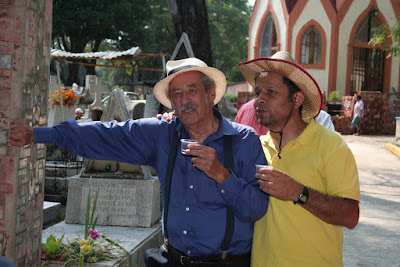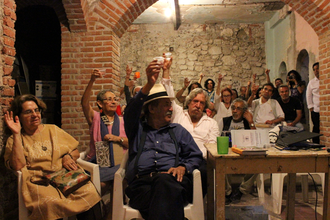 ¡El Farolito! Era un lugar extraño, en verdad un lugar para las últimas horas de la noche y las primeras del alba, y que por regla general, como aquella horrible cantina en Oaxaca, no abría sino hasta las cuatro de la madrugada. Pero como hoy era día de los muertos, no cerraría. Al principio le había parecido diminuta. Sólo después, cuando llegó a conocerla bien, logró descubrir cuán extensa era hacia el fondo, y supo que en realidad se componía de numerosos cuartos minúsculos, cada uno más pequeño y oscuro que el anterior y todos comunicados sucesivamente entre sí, y que el último y más oscuro de todos no era mayor que una celda. Antojábansele los cuartos como lugares en los que se urdían diabólicas conspiraciones y donde se tramaban atroces crímenes; aquí, como cuando Saturno se encontraba en Capricornio, la vida descendía hasta el fondo. Pero también aquí grandes pensamientos rotantes cerníanse en el cerebro; mientras el alfarero y el labrador madrugadores, deteníanse un momento, soñando, en la puerta exangüe... Ahora lo veía todo: al lado de la cantina el enorme declive que caía a la ‘barranca’ y evocaba a Kubla Khan; el propietario, Ramón Diosdado, conocido como el Elefante, de quien se rumoreaba que había matado a su esposa para curarla de la neurastenia; los pordioseros destrozados por la guerra y cubiertos de llagas, uno de los cuales, una noche, después de que el Cónsul le pagó cuatro copas, lo tomó por Cristo y, cayendo de rodillas a sus pies le prendió ágilmente con alfileres, en la solapa de su saco, dos medallones unidos a un diminuto corazón labrado que sangraba, semejante a un acerico, con la imagen de la Virgen de Guadalupe...